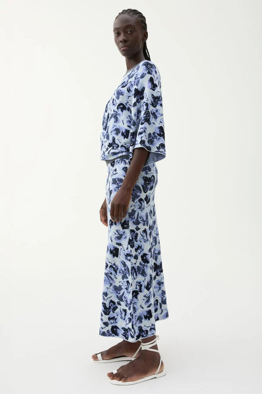 Flora Knitted Skirt, Sweet Violet Ditsy Blue