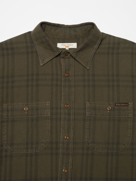 Julian Worker Plaid Check Shirt, Olive