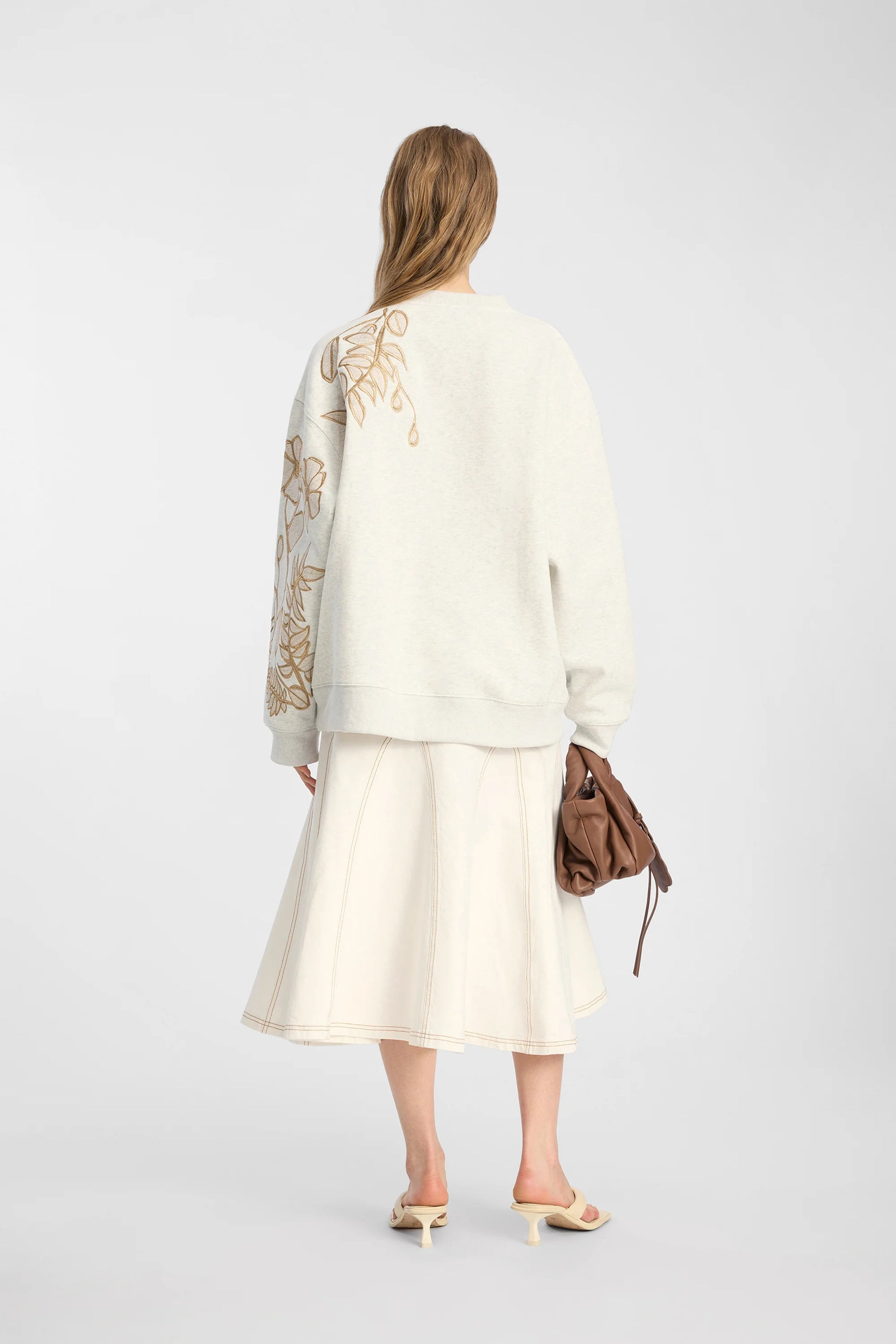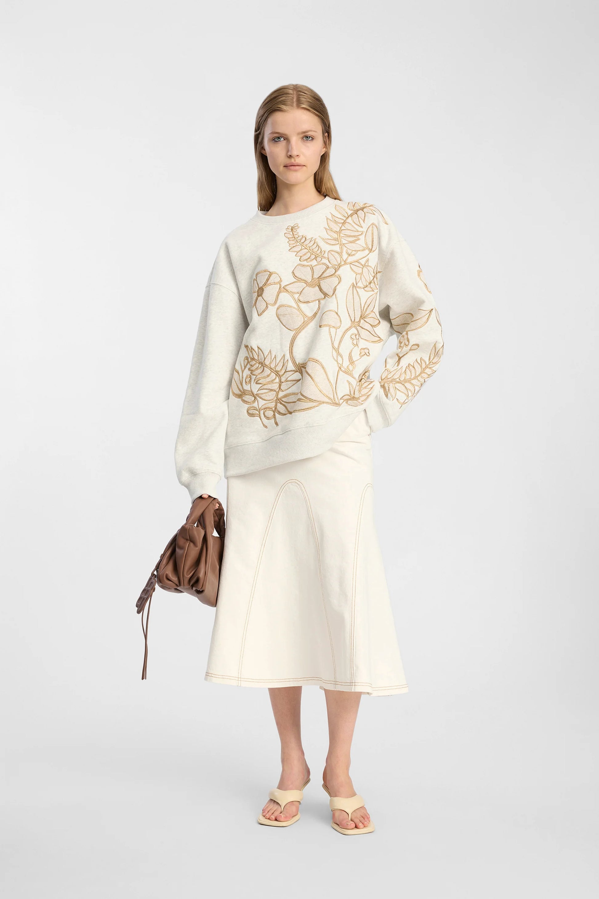 Braeden Top från Munthe är dekorerad med en blommig brodyr. Tröjan har rund halsringning, långa ärmar samt ribbade muddar och nederkant.