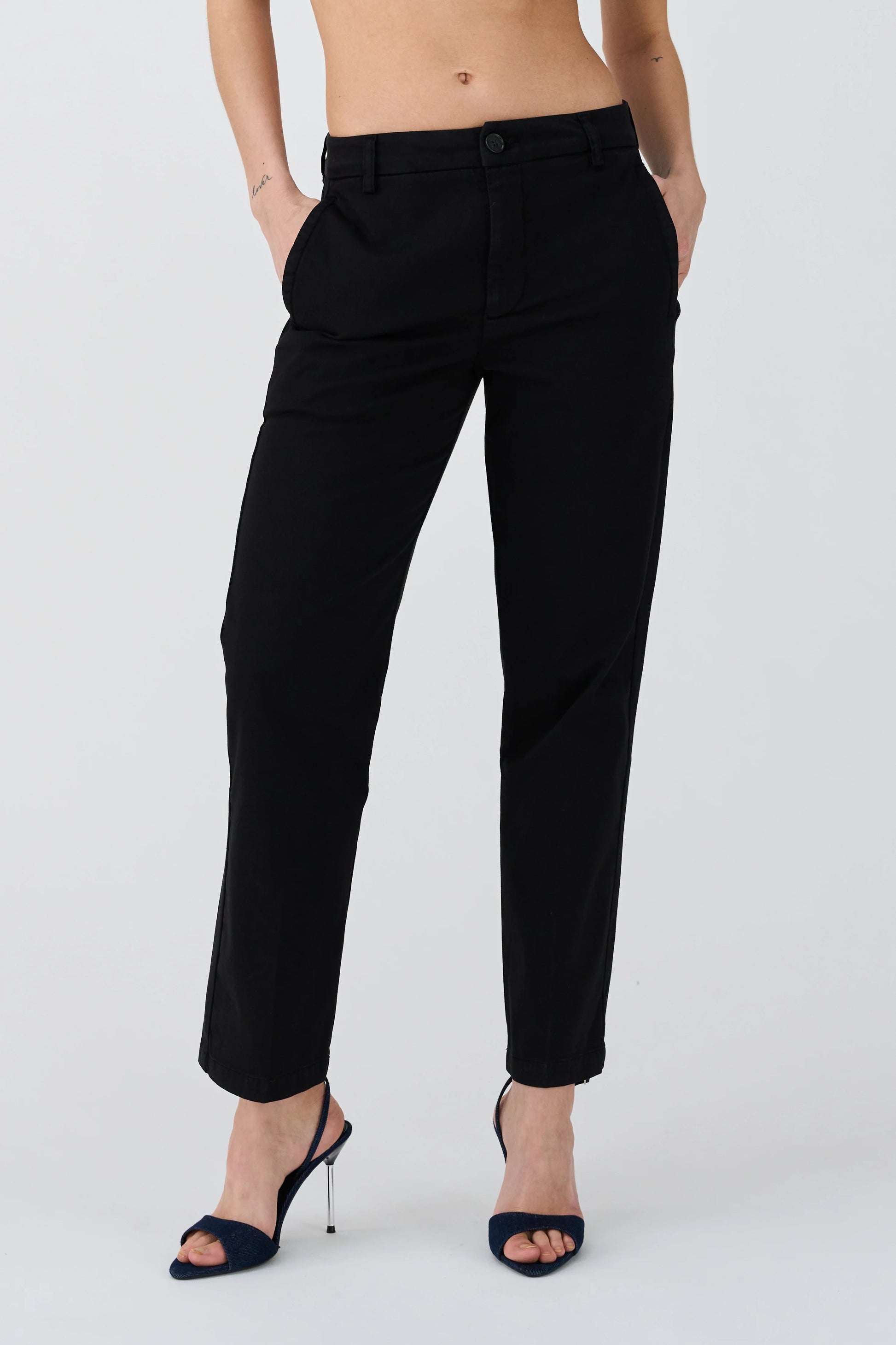 - Normal passform, Medelhög midja, Avsmalnande och Ankellånga ben