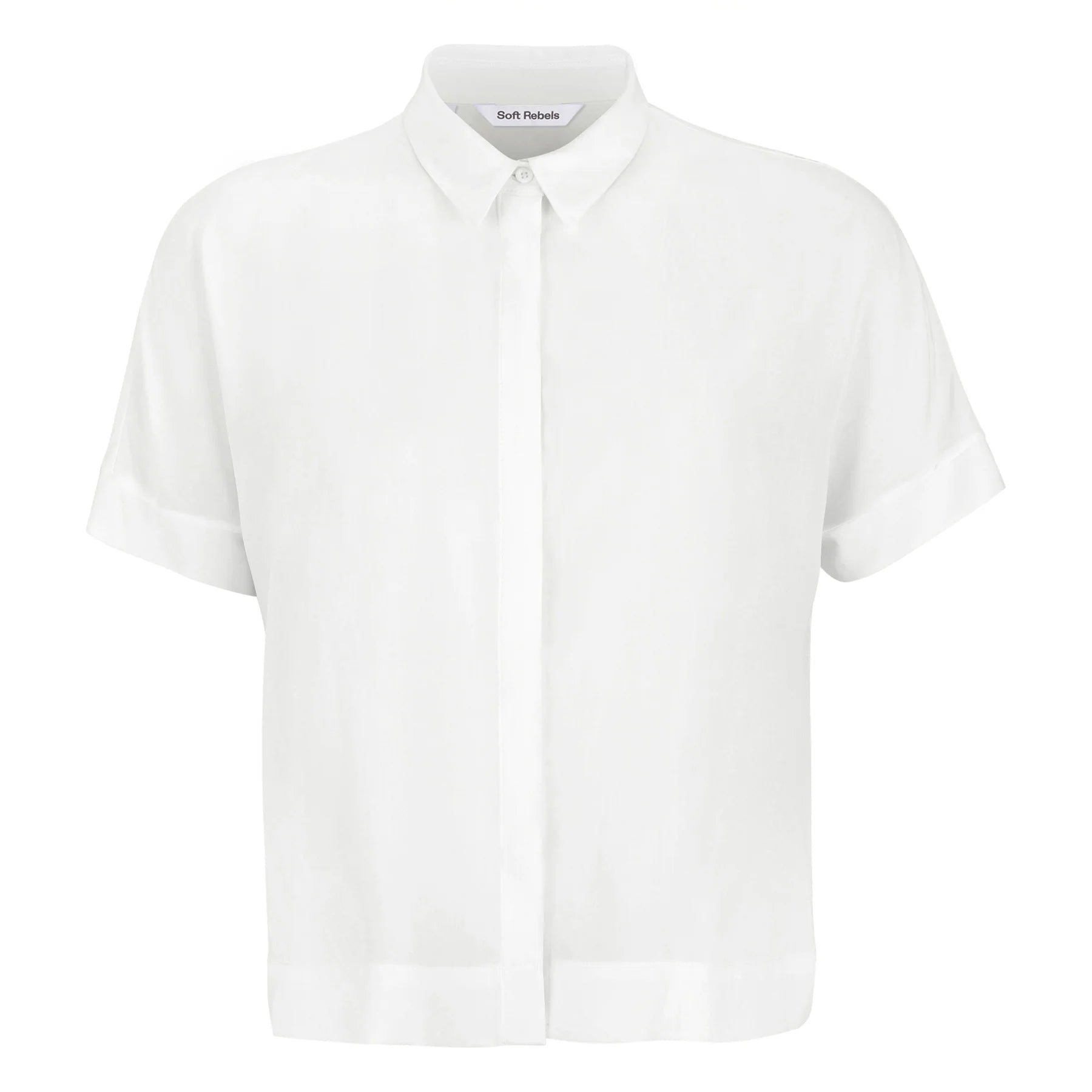 Fantastisk kortärmad skjorta från Soft Rebels med lös passform, klassisk skjortkrage och dold knappstängning framtill. Ett givet inslag i basgarderoben som passar till det mesta. Klä upp den med kavaj eller styla instoppat i ett par jeans för en snygg vardagslook.