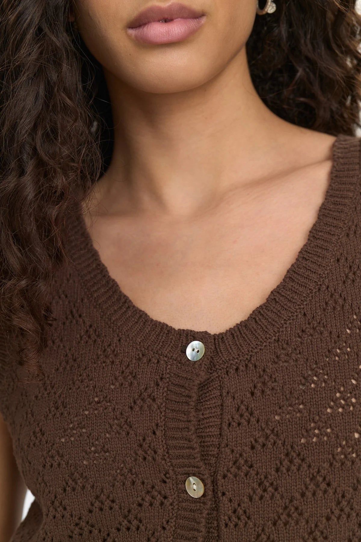 Nudarwina Top från Nümph är ett hålstickat linne med knappar fram, rund halsringning samt ribbstickad krage och knappslå.