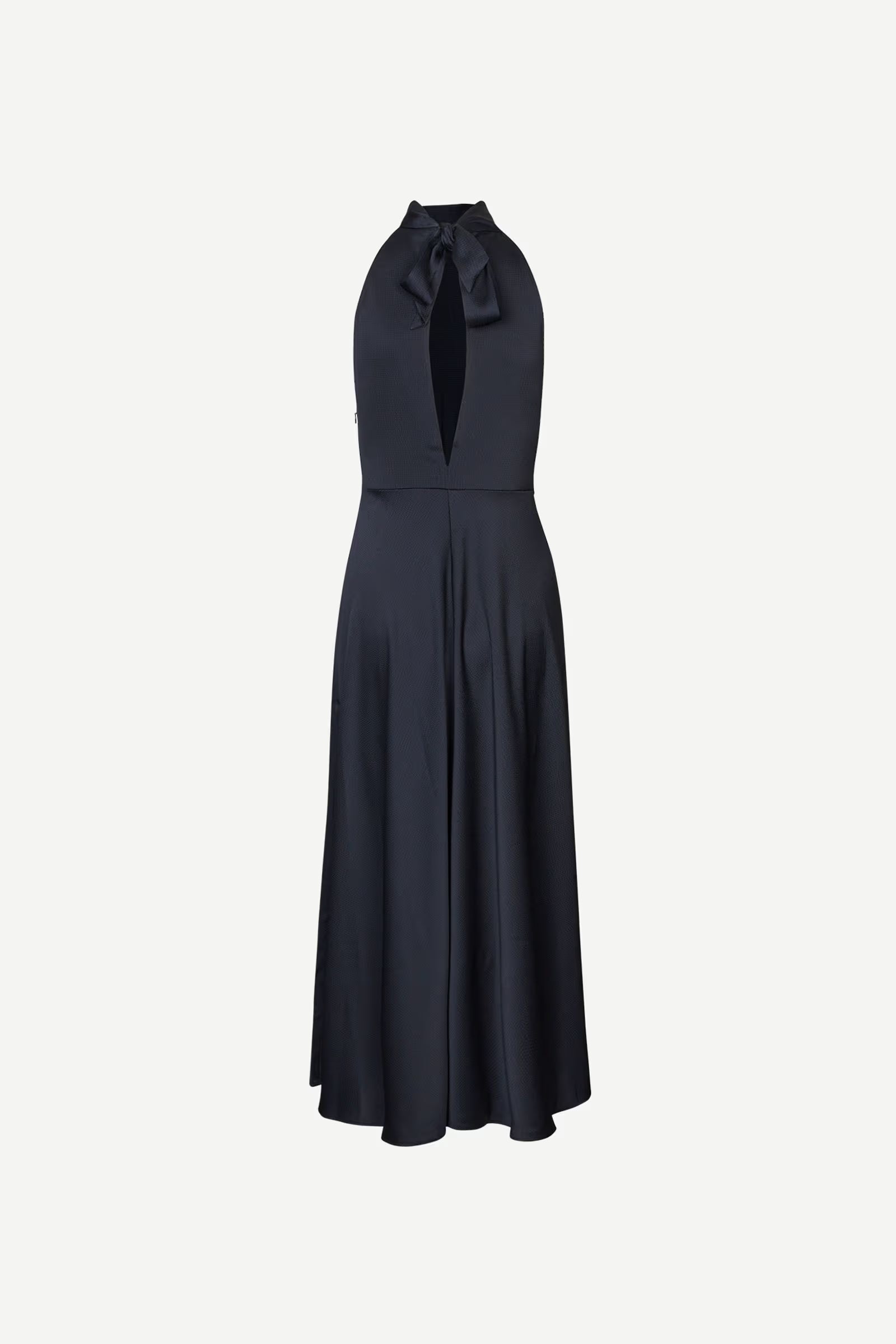Rheo Dress från Samsøe Samsøe är en ärmlös satinklänning med normal passform, utsvängd kjol och knytdetalj baktill. En tidlös klänning som passar perfekt vid festliga tillfällen.