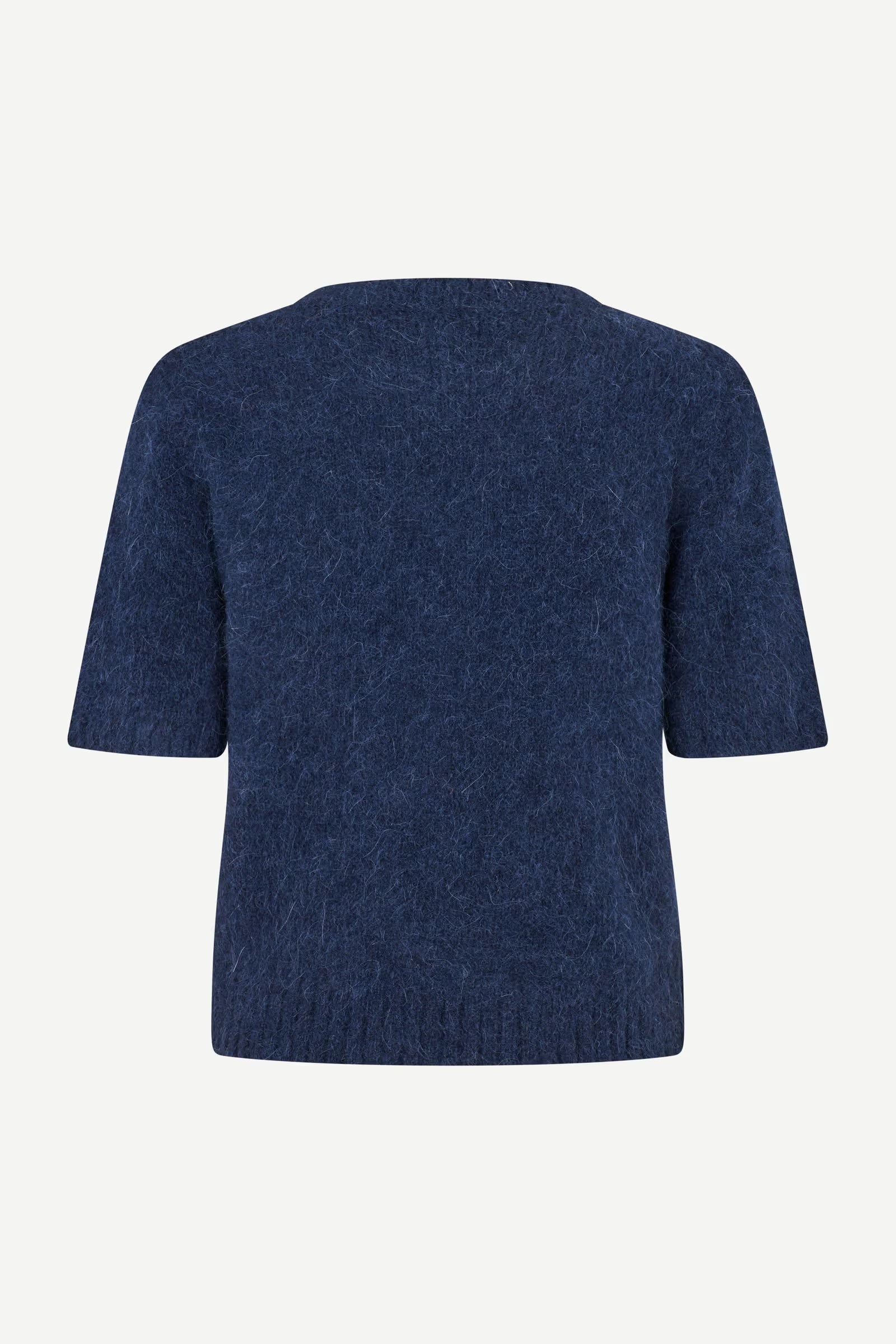 Sajeanne Top från Samsøe Samsøe är en stickad tröja med en borstad look, kort ärm samt ribbstickad krage, muddar och fåll. Fin att bära tillsammans med matchande kjol eller med jeans!