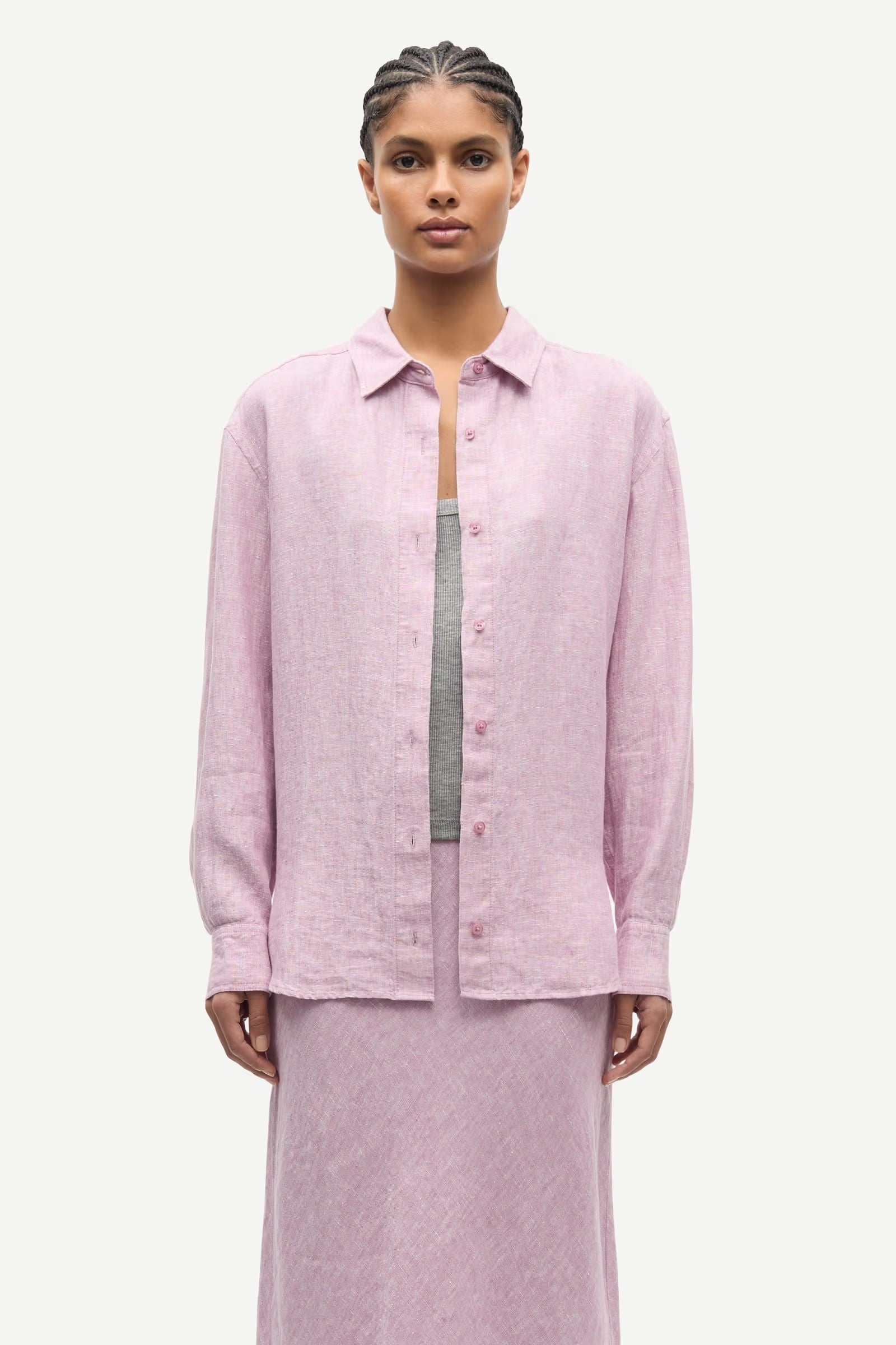 Saloves Shirt från Samsøe Samsøe är en linneskjorta med långa ärmar och ok med söm i nacken.