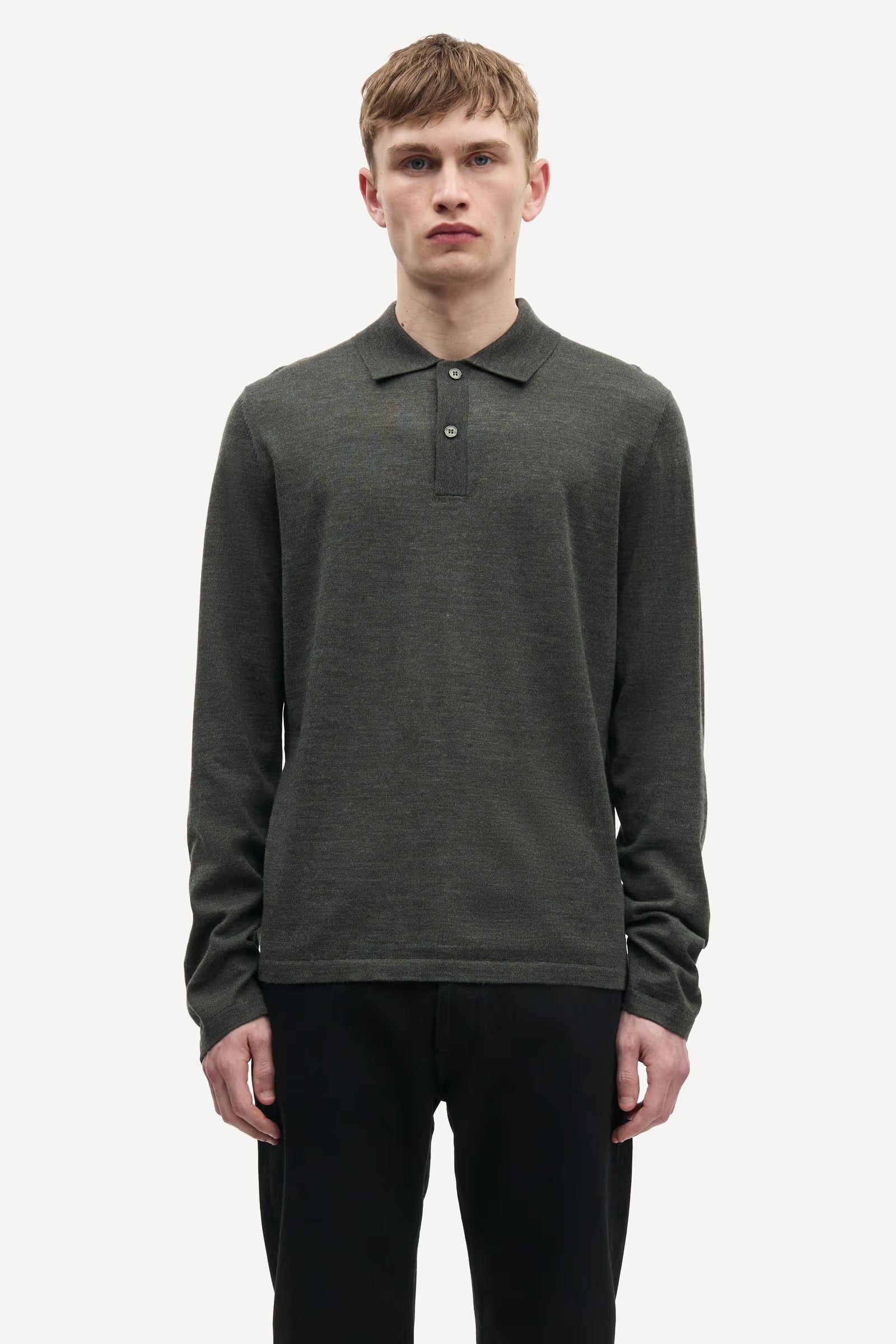 Sarowan LS Polo från Samsøe Samsøe är en pikétröja i en extra fin merinoullsblandning. Tröjan har en normal passform, långa ärmar och kort knäppning framtill.