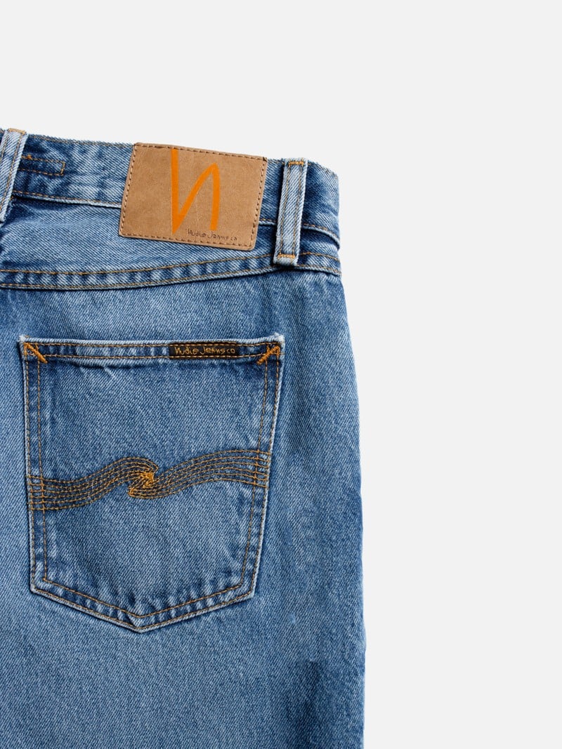 Shady Sadie från Nudie är ett par jeans med normal passform, låg midja och raka ben. Jeansen har knappstängning, fem fickor, jacronlapp, tobacco färgade sömmar och broderi på bakfickan. Ett par klassiska jeans som är ett måste i basgarderoben.