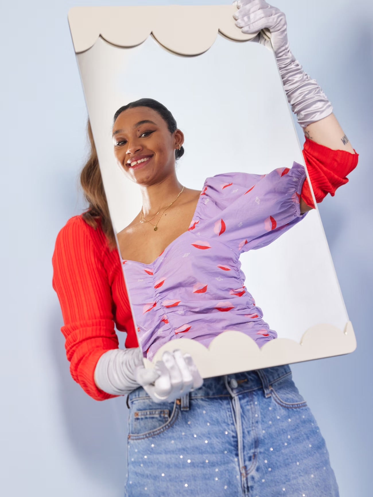 Spegel Bubbly från ByOn med mjuka rundade former inspirerat av luftiga moln. Spegeln har både vertikal och horisontell upphängning för att kunna variera sättet att ha den på.