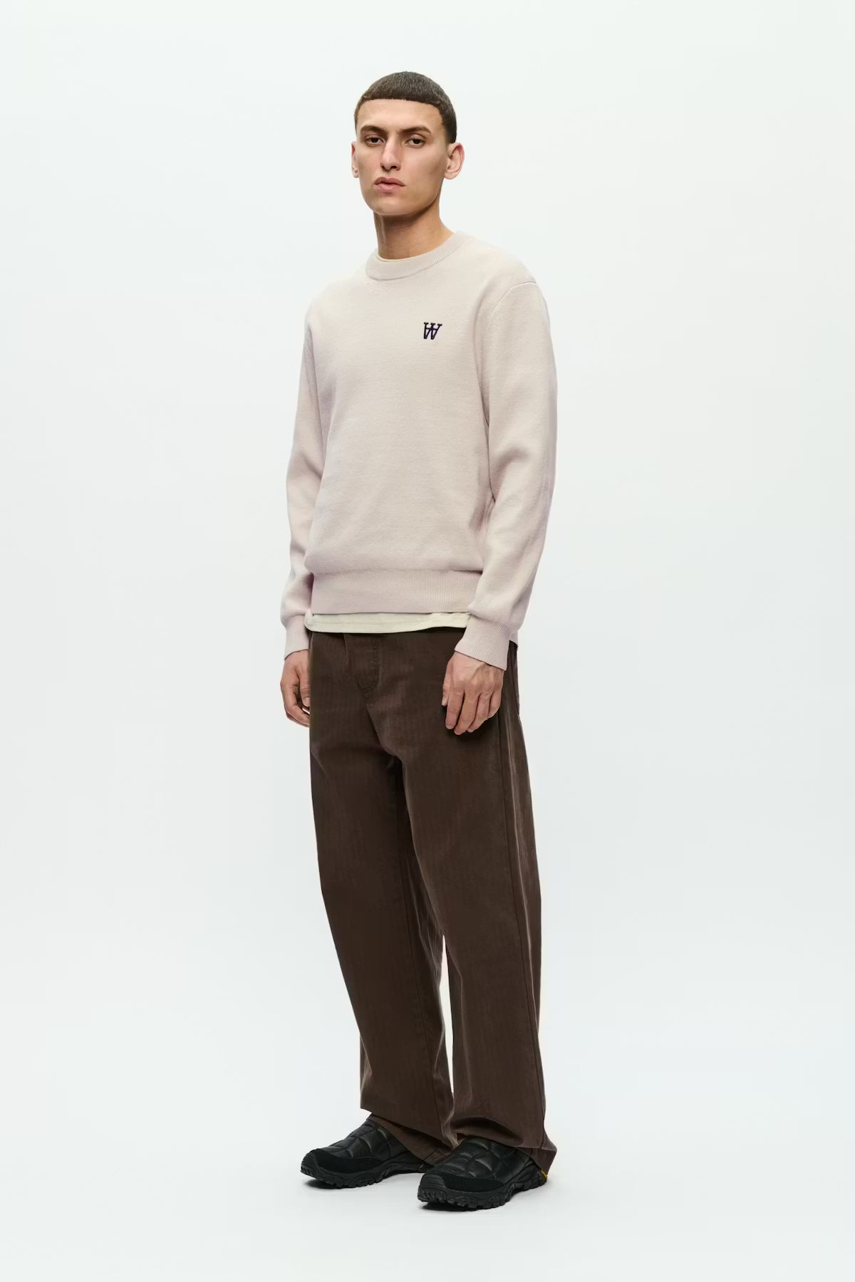 WWCurt Pullover från Wood Wood är en långärmad stickad tröja med normal passform, rund hals och logotyp på bröstet.
